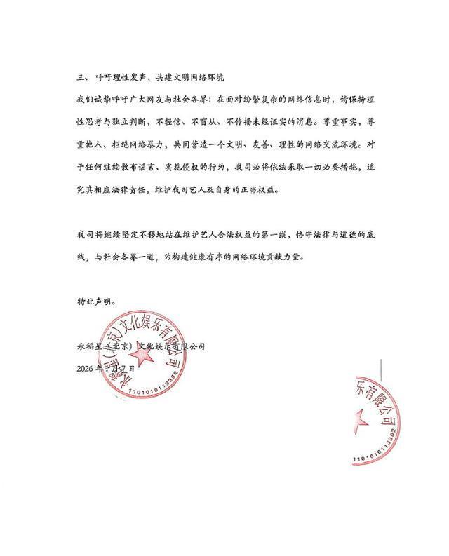 1月7日下午,据微博@蔡依林Pleasure巡回演唱会 消息,蔡依林方发布《关于坚决维护艺人合法权益及抵制网络不实信息的严正声明》。该声明的落款为永稻星(北京)文化娱乐有限公司,为演唱会的主办方。